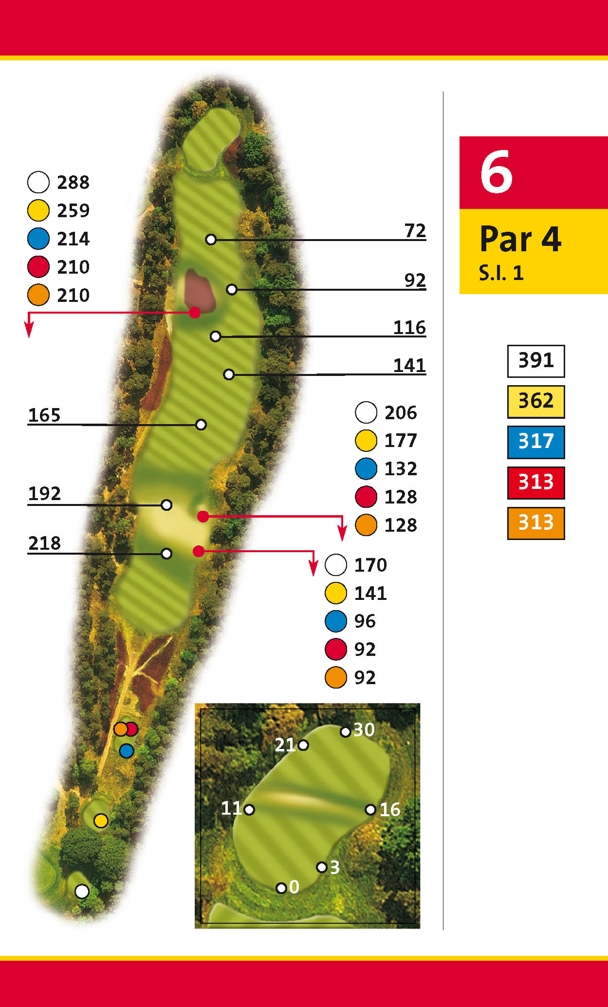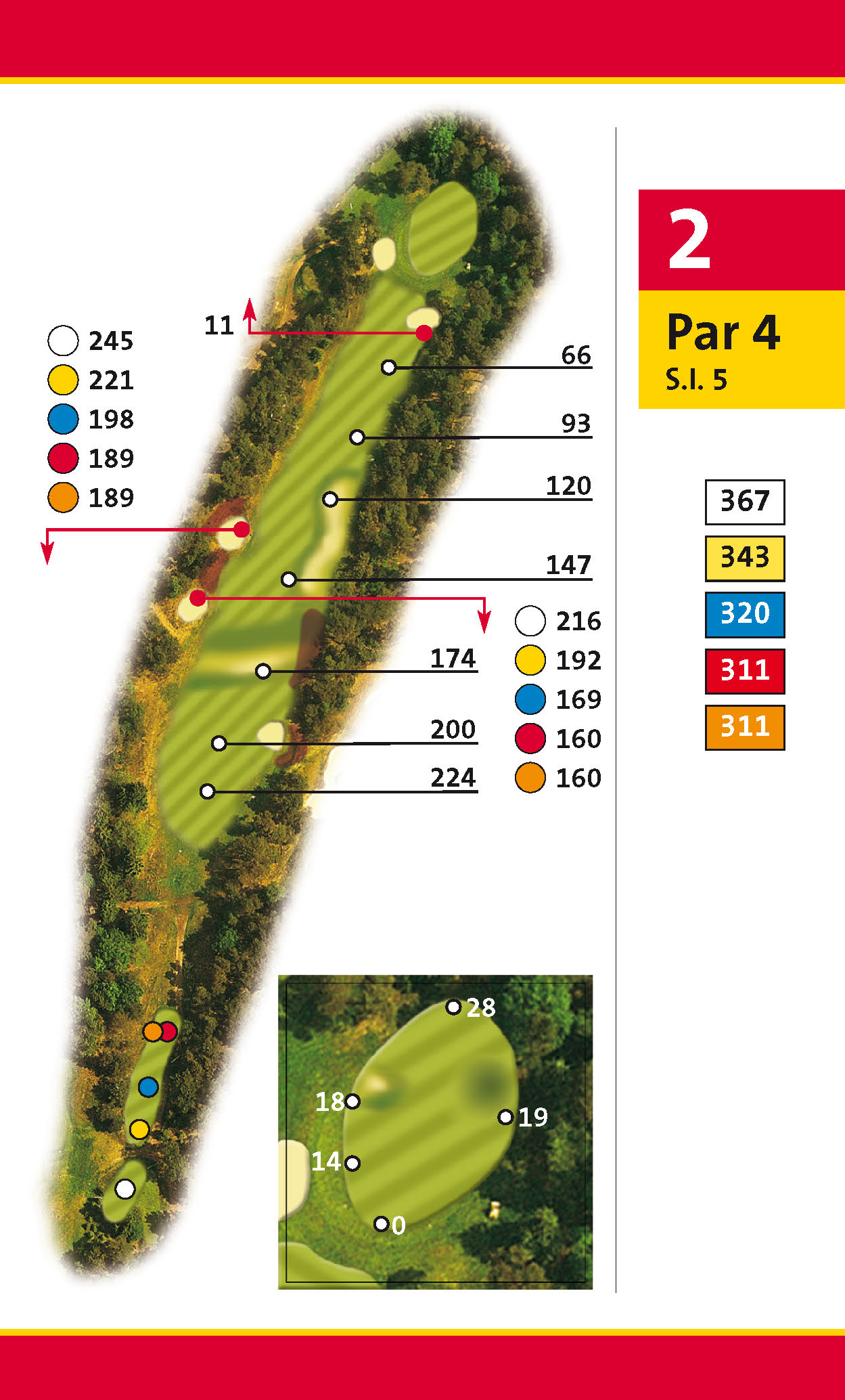 Pro vision: Not a lot of choice here with the Tee shot, normally a driver is needed to carry the ‘Heide’ on the left side of the hole, otherwise the landing area on the fairway is much too small. Play your second shot towards the Heide hill, trying to keep to the left side of the fairway. Leaving yourself about 120 meters to the green is the goal. Just remember when the flag is on the front of the green it’s a must to play your approach over the flag to insure yourself the chance for a 2 putt Par, yes that’s right a real Par…