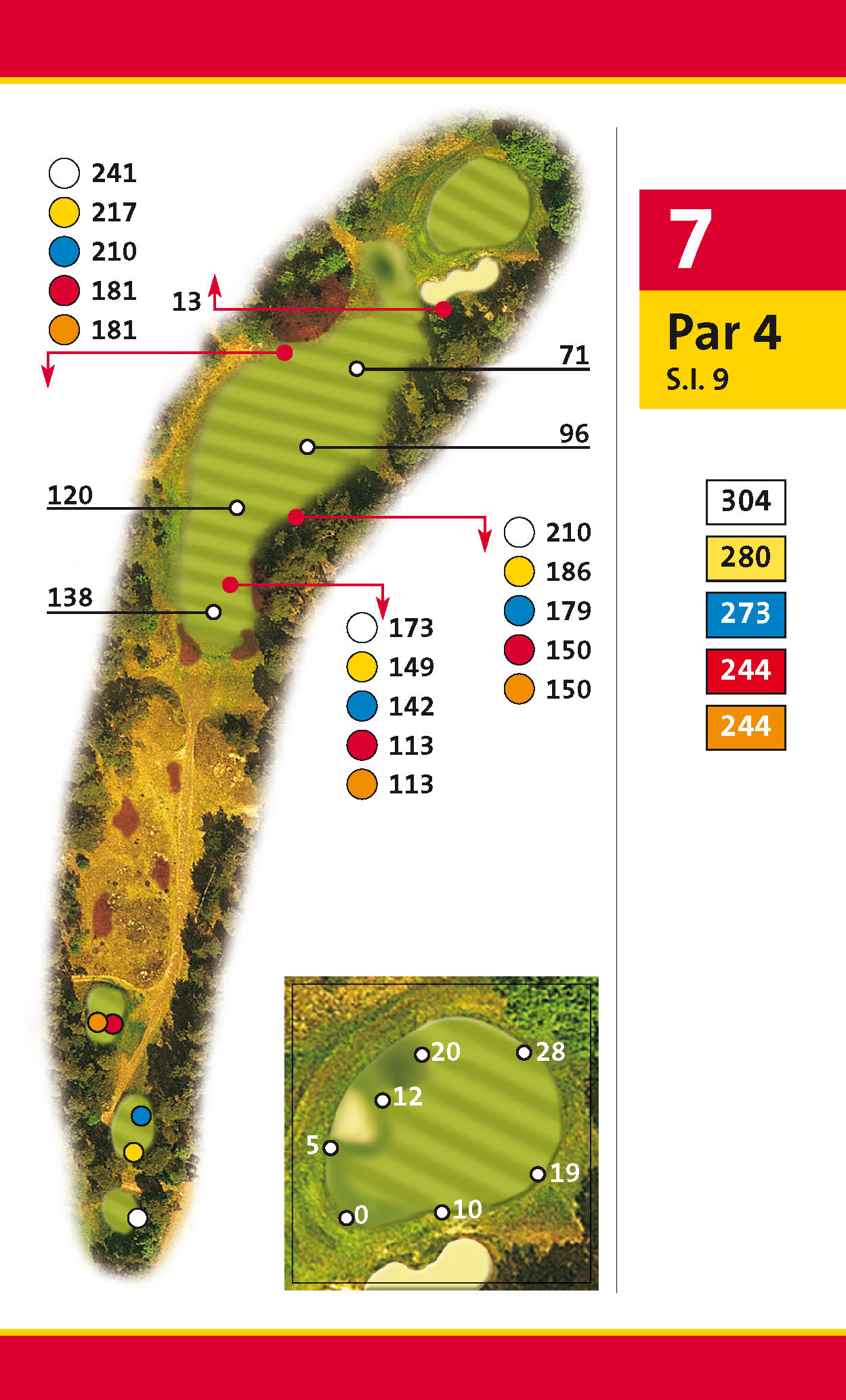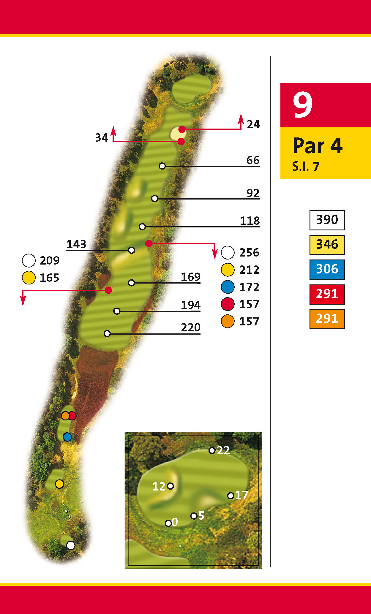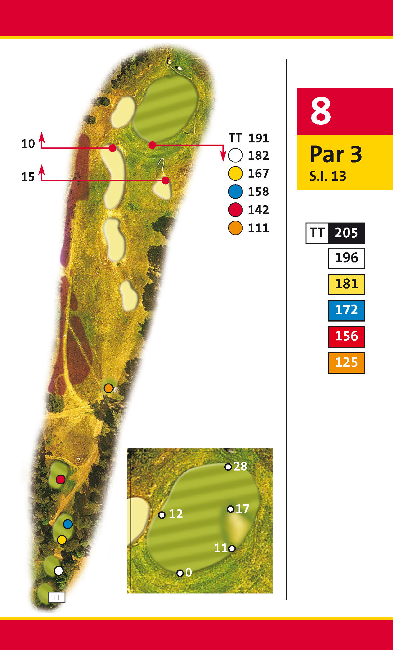 Pro vision: Here we are, Stroke index no.1, the chance to show all your friends how good you are. You have already 10 points on the score card, you’re feeling good, but please don’t try and do something stupid and go for the green in 2 shots. Choose a club for your tee shot, which you can just carry, the top of the first hill, for some of you this is the driver but for most it’s a 5 wood or rescue/Hybrid. Then pitch the ball to the corner at the same distance from the hole as the bell, leaving yourself a reasonably easy approach to the green, with a view of the flag. When playing your third shot aim to the left side of the green to take the hill just short of the green out of play. 2 putts and you have just earned yourself 2 Points, maybe 3, the smile just keeps getting bigger.